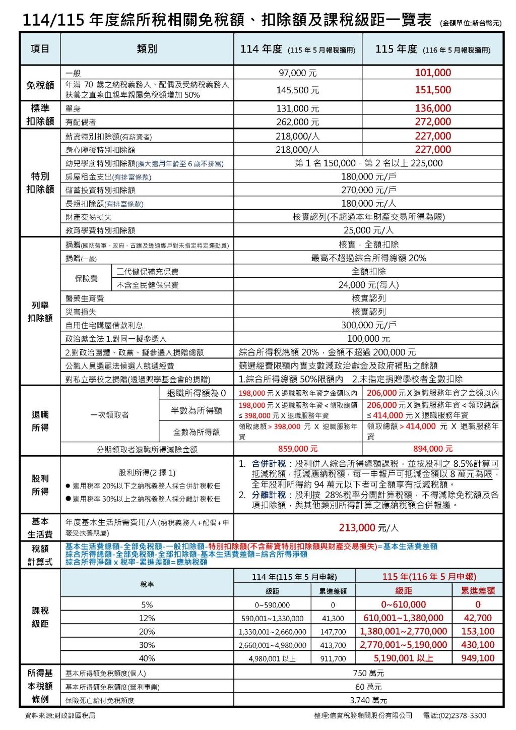 2026年新版遺贈稅暨綜所稅稅率表
