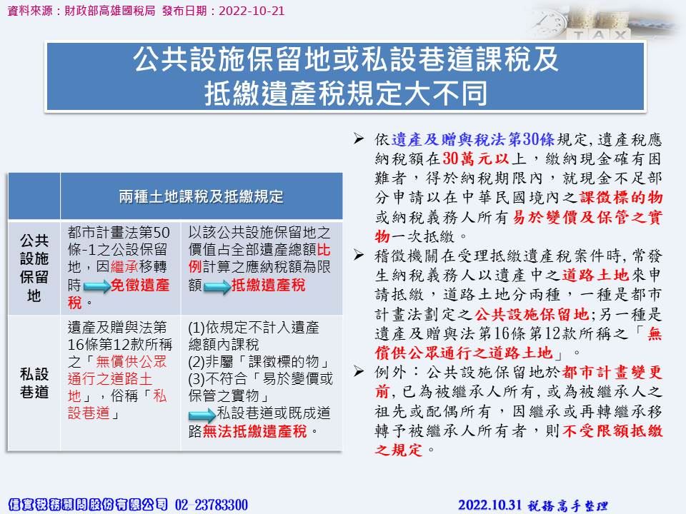 公共設施保留地或私設巷道課稅及抵繳遺產稅規定大不同