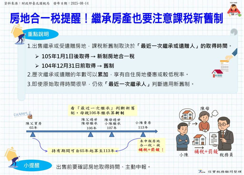 課稅新舊制要看「最近一次繼承或遺贈人」取得時間。