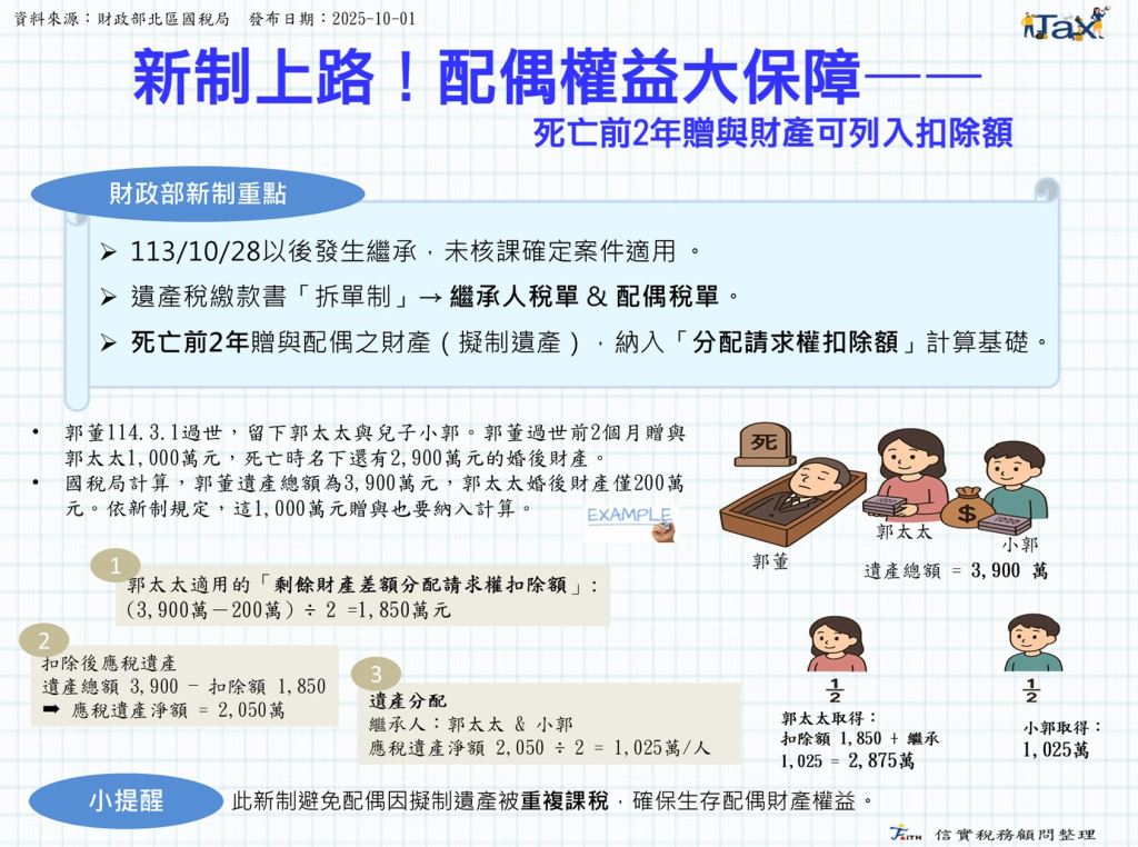 新制上路!配偶權益大保障——死亡前2年贈與財產可列入扣除額